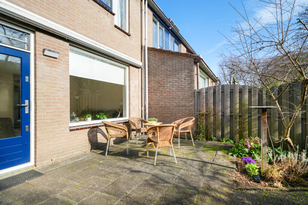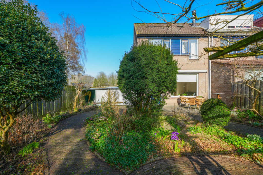 * De achtertuin is gelegen op het Zuiden en voorzien van een vrijstaande, stenen berging. De achtertuin is via de poort aan de zijkant van de woning bereikbaar.