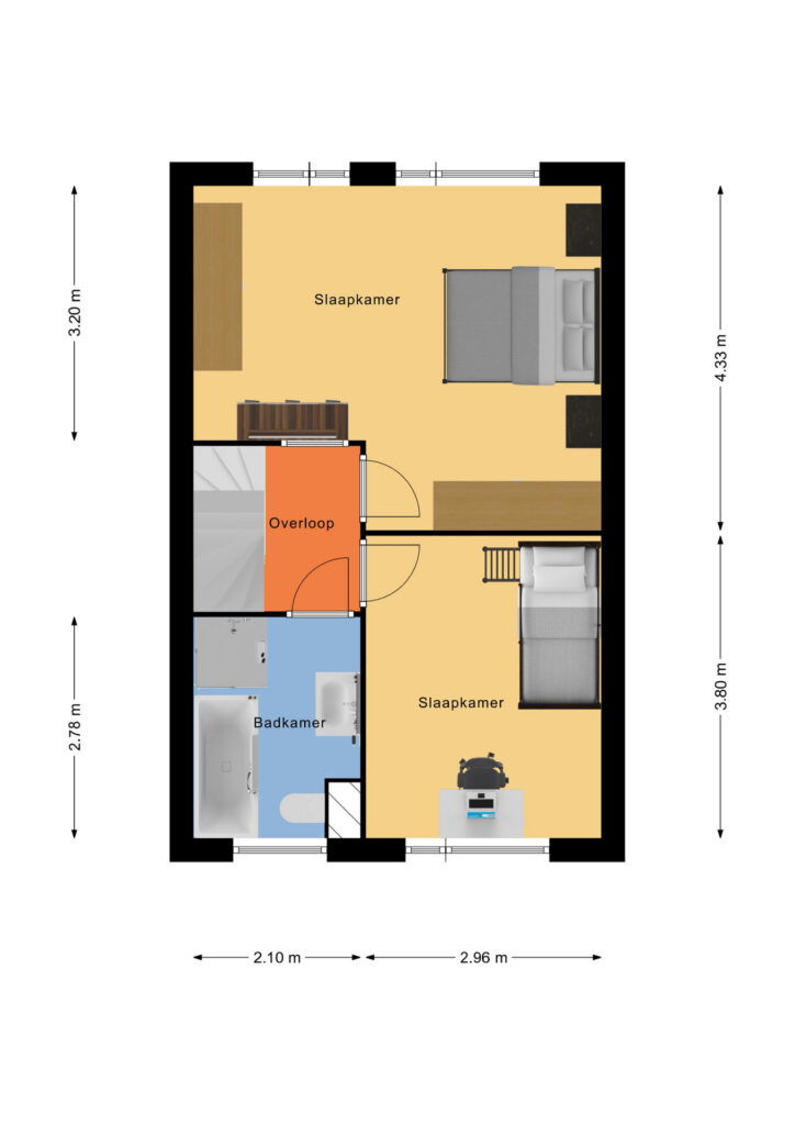 * Slaapkamer II is gelegen aan de voorzijde.