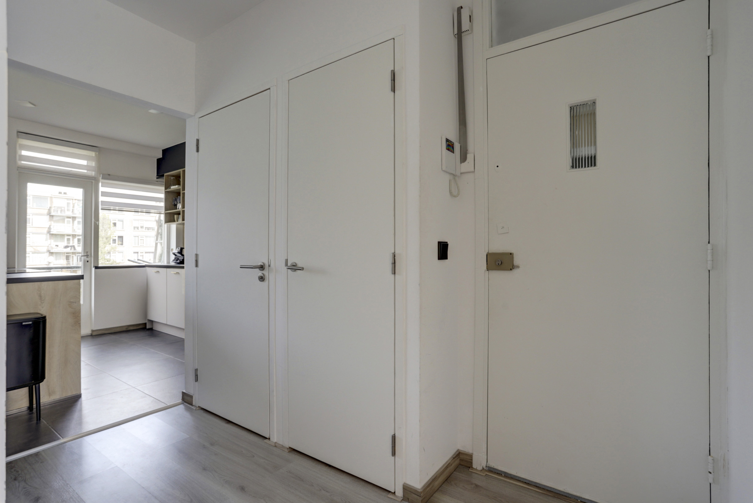 * Gesloten portiek met intercom en toegang tot de kelderbergingen