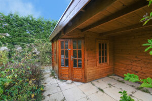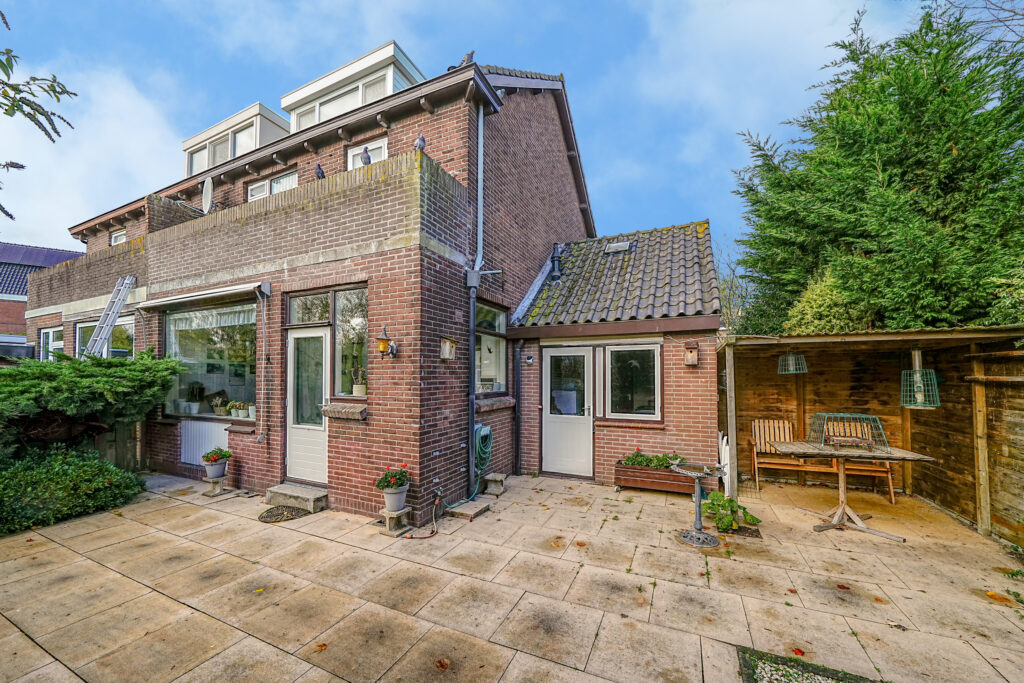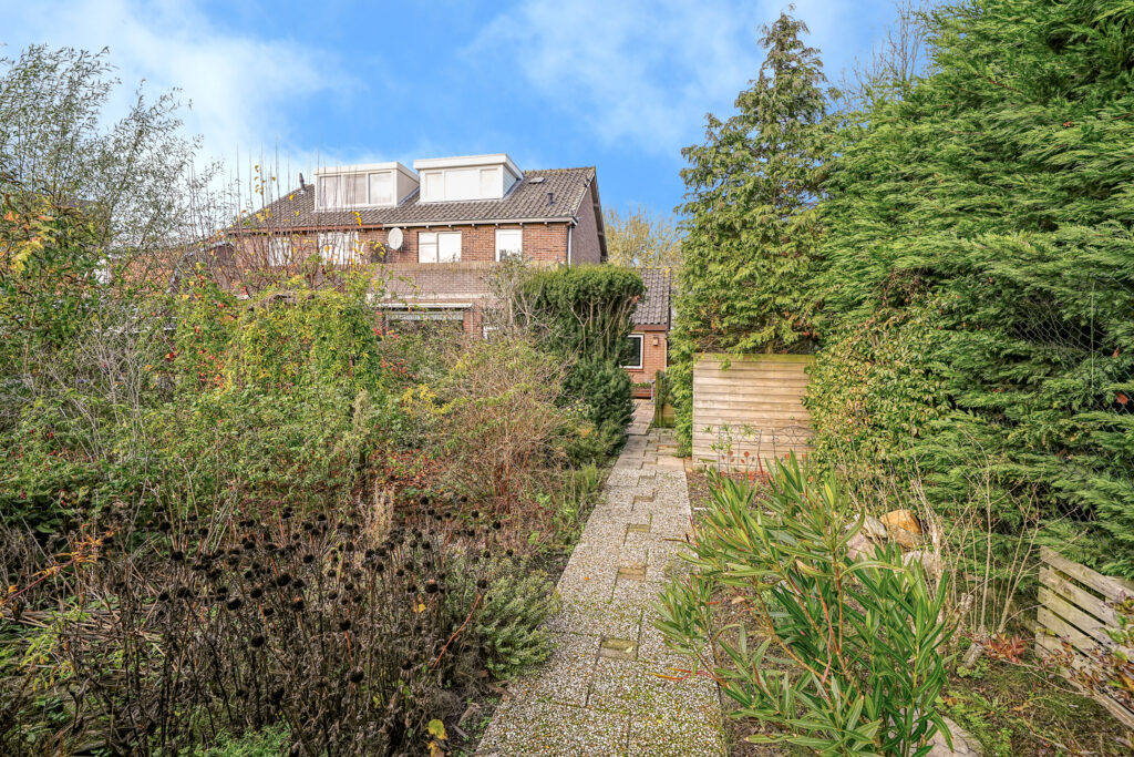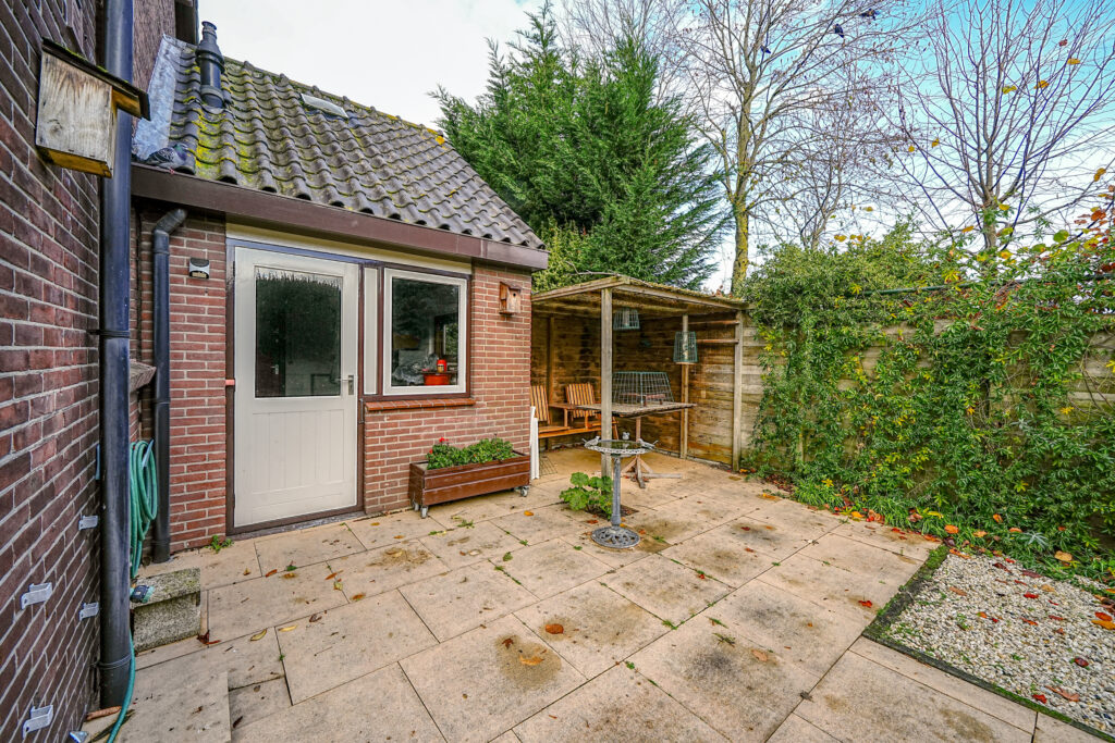 * De achtertuin is gelegen op het zuidoosten en is voorzien van een houten berging. Ook is er een aangebouwde stenen schuur naast de woning, waarin zich de CV-opstelling bevindt.