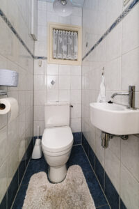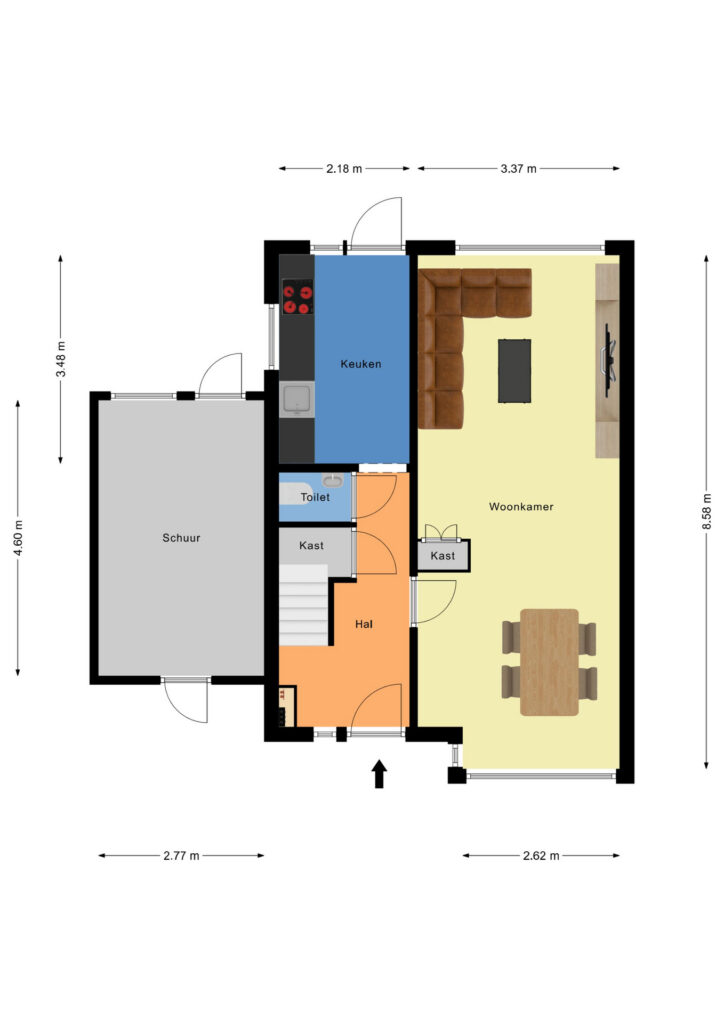 * Entree met meterkast, trapopgang, trapkast, separaat toilet met fonteintje en toegang tot de woonkamer en de keuken;