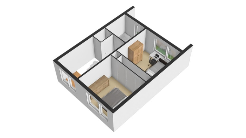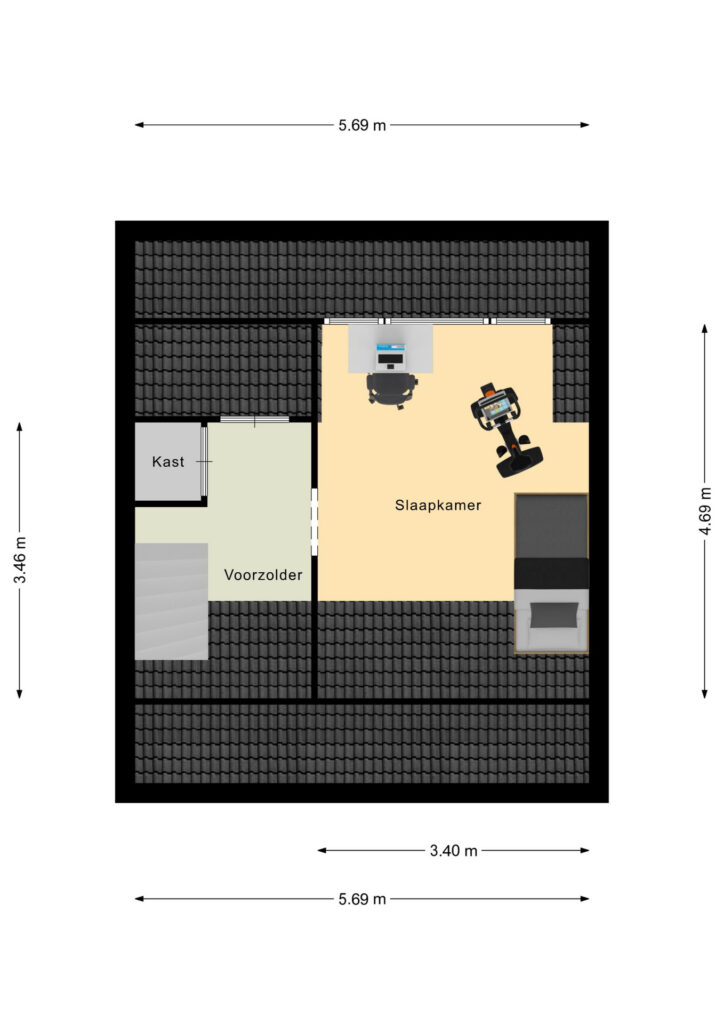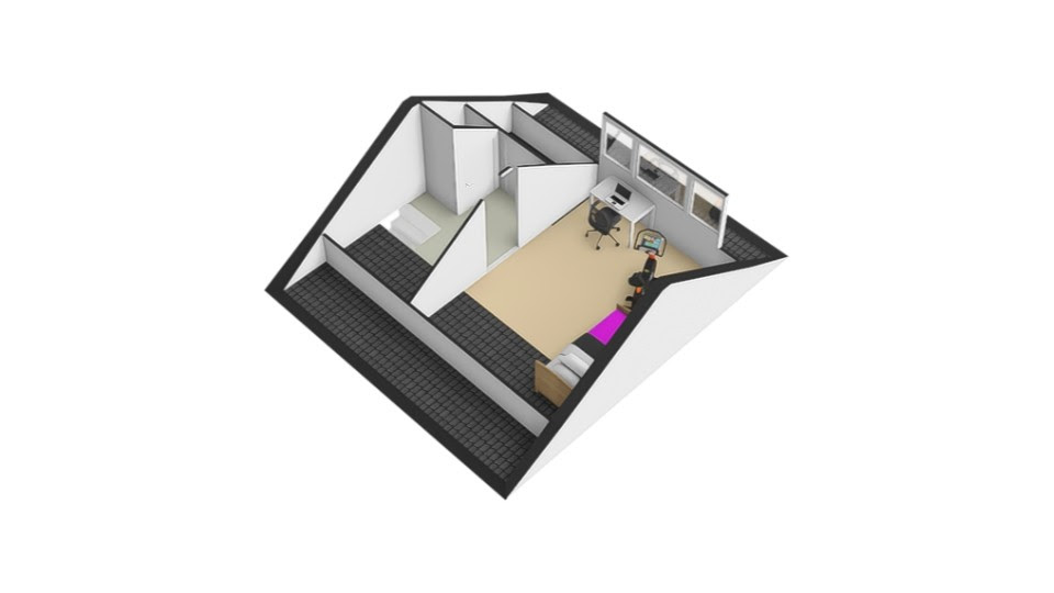 * De zolderkamer beschikt over een dakkapel aan de achterzijde.